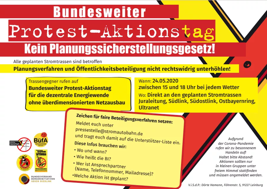 Bundesweiter Protest-Aktionstag am 24.05.2020: Kein Planungssicherstellungsgesetz!